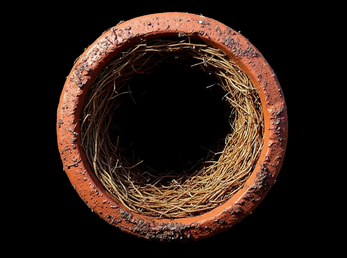 This pipe is a textbook case of complete root infiltration. The interior is essentially a root ball, causing constant sewage backups and emergency situations.