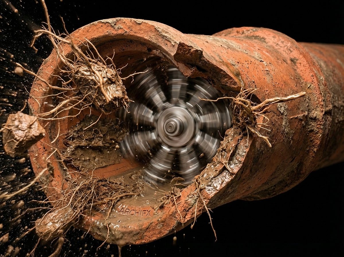 Hydro-jetting cuts through roots and clears 100% of blockages