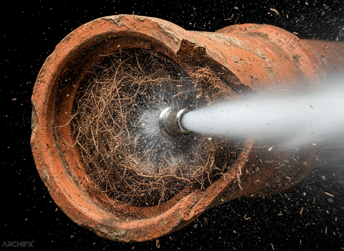 High-pressure jetting removes roots, debris, and scale, preparing the pipe for the new liner installation.